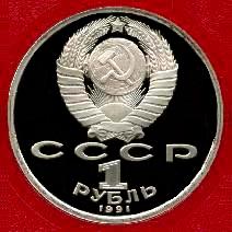 Примечание: При чеканке использовался вариант шт.VI.8(91).1, аналогичный шт.VI.8(87) и шт.VI.8(88), но с датой "1991": параллели и меридианы над поверхностями океанов на земном шаре в гербе выпуклые. Гребенка верхних остей справа от звезды имеет уступ. Цифры даты удалены от внешнего ободка монеты.