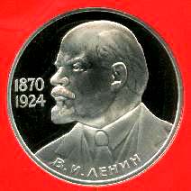 В центре профильный портрет В.И.Ленина, повернутый влево. Справа годы жизни "1870" и "1924", расположенные друг под другом. Внизу вдоль внешнего ободка монеты полукругом надпись "В.И.ЛЕНИН".