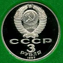 Для чеканки монеты использовался вариант шт.I(3 р.)(87) с датой "1987".
