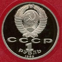 Примечание: Для чеканки монеты применялся вариант шт.VI.7(89), аналогичный шт.VI.7(87) и шт.VI.7(88), но с датой "1989": параллели и меридианы над поверхностями океанов на земном шаре в гербе выпуклые. Гребенка верхних остей справа от звезды имеет уступ. Цифры даты и герб приближены к внешнему ободку монеты.