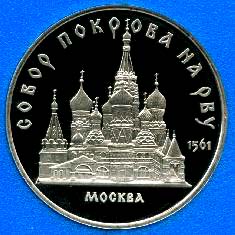В центре изображение собора Покрова на рву на Красной площади в Москве. Под ним надпись "МОСКВА". Справа дата "1561". Вверху вдоль внешнего ободка монеты полукругом надпись "СОБОР ПОКРОВА НА РВУ".