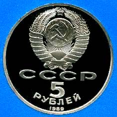 Для чеканки монеты использовался вариант шт.I(5 р.).2(89), выполненный под диаметр монеты 35 мм, с датой "1989".