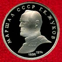 1990. Май, 8. Памятная монета с изображением маршала Советского Союза Г.К.Жукова, выпущенная в ознаменование 45-й годовщины Победы советского народа в Великой Отечественной войне 1941-1945 г.г.